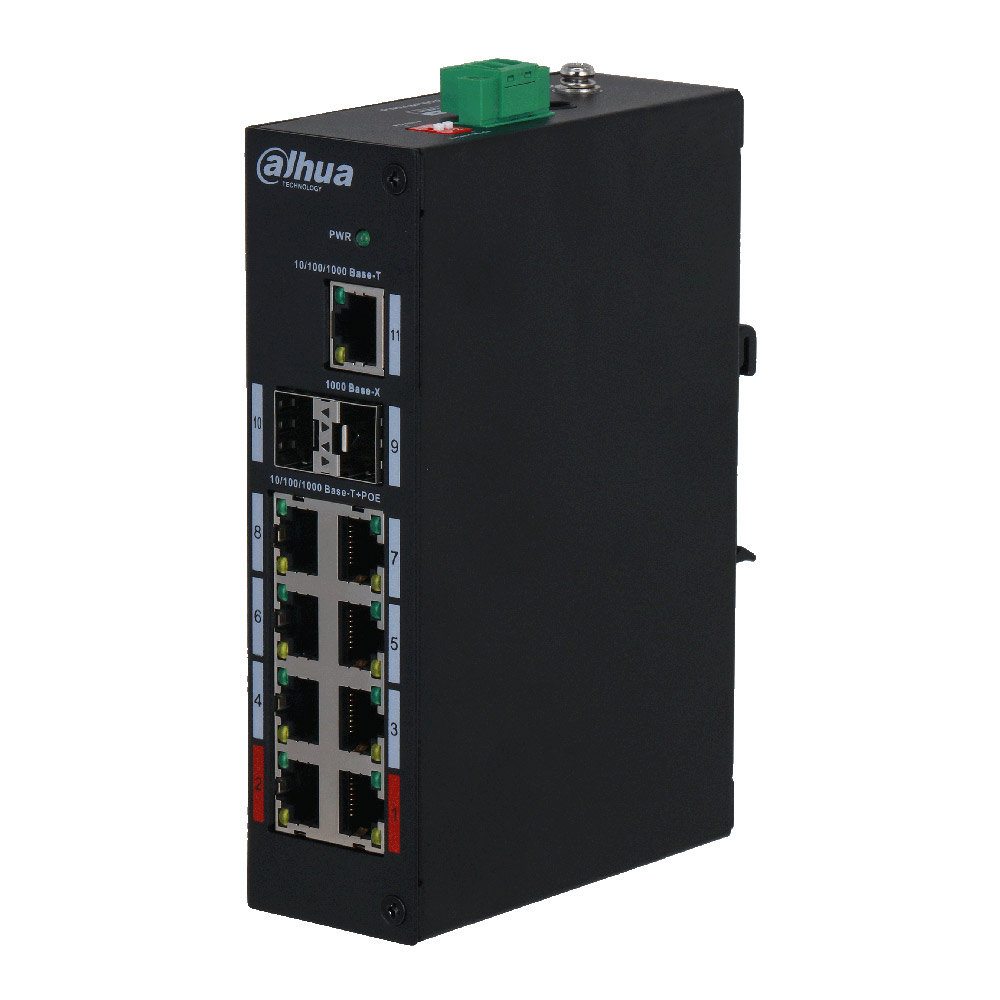PFS3211-8GT-120 – неуправляемый защищенный коммутатор с 8 портами 10/100/1000 Мбит/с, каждый из которых поддерживает подачу питания PoE. Он оснащен 8 основными портами Ethernet со скоростью 10/100/1000 Мбит/с, 2 портами uplink uplink SFP со скоростью 1000 Мбит/с и 1 портом Ethernet uplink со скоростью 10/100/1000 Мбит/с. Данная модель поддерживает два режима передачи (увеличенная дальность вкл. / выкл.). Красный порт поддерживает стандарт IEEE802.3bt и Hi-PoE. Максимальная мощность подаваемого на порт питания составляет 120 Вт. Он также поддерживает сторожевой таймер PoE, что позволяет избежать обслуживания и перезапуска подключенных сетевых устройств, реализует интеллектуальное управление и сокращает эксплуатационные расходы.