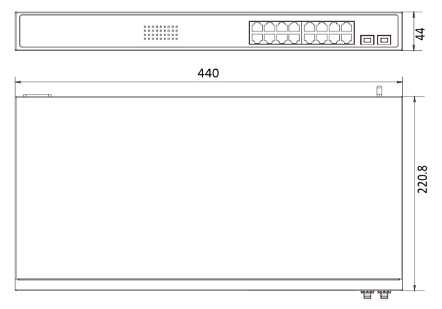 • 16 × Gigabit PoE-портов, 2 × Gigabit SFP оптоволоконных порта.
