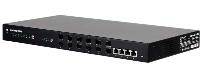 Коммутатор оснащен 12 гигабитными SFP портами, 8 из которых могут работать на скорости 100 Мб/сек. Остальные 4 поддерживают исключительно гигабитный стандарт.