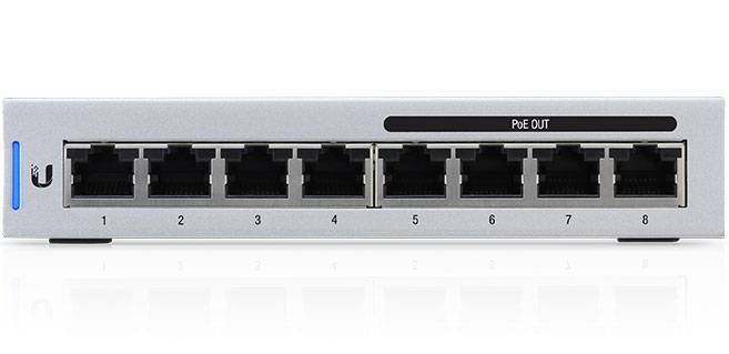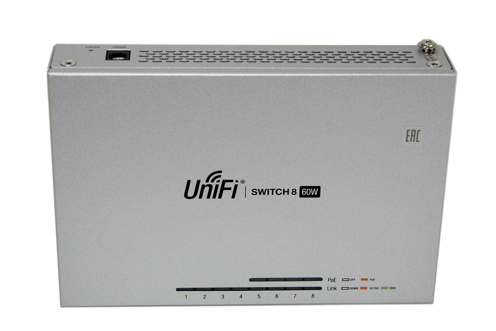 UniFi Switch 8-60W первая и наиболее простая модель в серии коммутаторов UniFi с возможностью раздачи питания PoE подключенному оборудованию. Коммутатор имеет 8 гигабитных Ethernet портов, с возможностью раздачи питания PoE на портах начиная с 5 по 8.