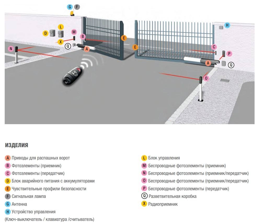 Пример обеспечения дополнительной безопасности с фотоэлементами серии DB для распашных ворот