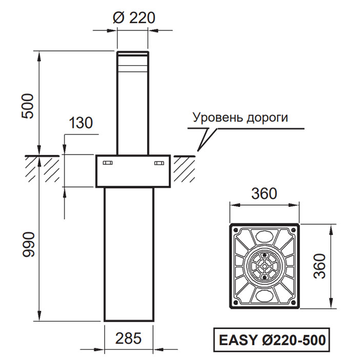 BFT EASY RUS 220/500-6 – прочный и практичный в эксплуатации, боллард с электромеханическим двигателем от итальянского производителя BFT.