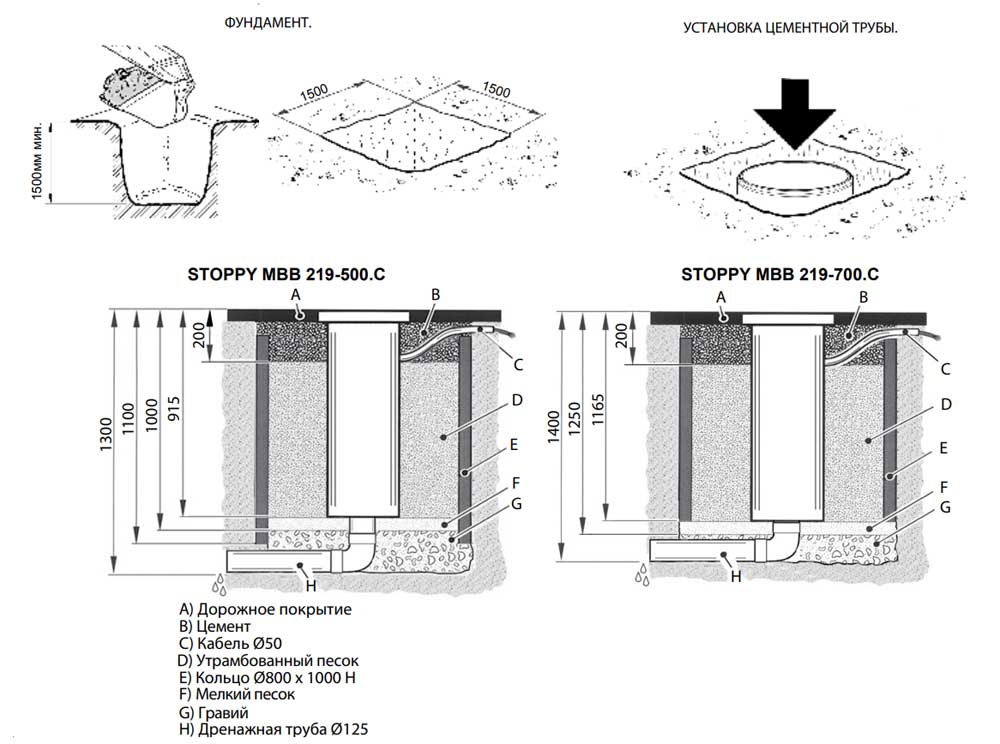 • Высота болларда: 700 мм.