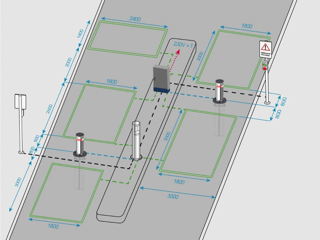 - Опциональные магнитные петли для детекции транспортных средств.
