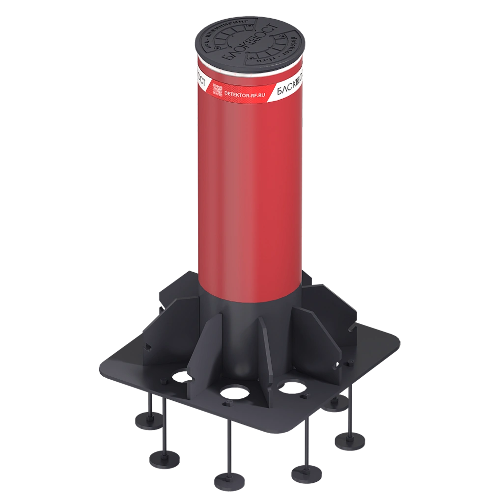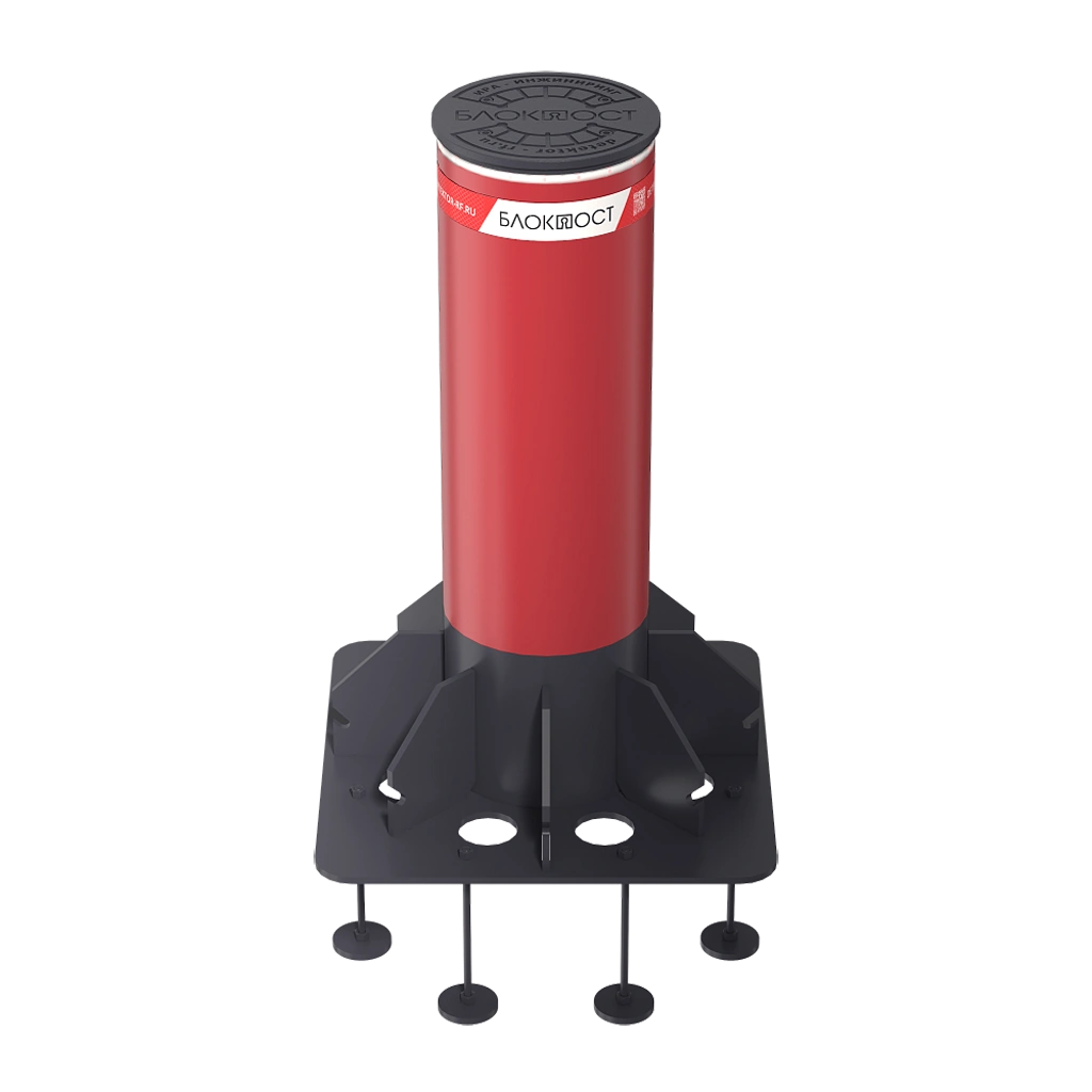 Модель выполнена в стационарном исполнении и не имеет подвижных элементов, что исключает риск механических повреждений и минимизирует необходимость обслуживания. Цилиндр из окрашенной стали толщиной не менее 10 мм выдерживает значительные ударные нагрузки, а верхняя и нижняя крышки изготовлены из окрашенного антикоррозийного чугуна. Благодаря этим материалам боллард устойчив к воздействию влаги, дорожных реагентов и механическому износу. Светодиодная подсветка цилиндра красного цвета обеспечивает визуальное обозначение защитного элемента в темное время суток и при плохой видимости.