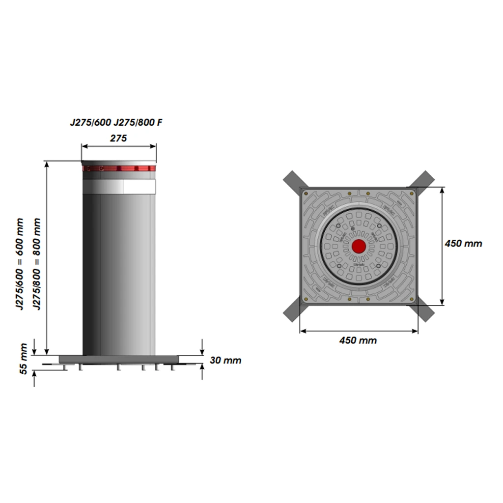Faac J275 F (800 мм) монтируется без фундаментного короба, что упрощает установку и снижает стоимость строительных работ. Его можно использовать как самостоятельный элемент, так и в сочетании с автоматическими или полуавтоматическими боллардами серии J275, выстраивая единую по дизайну и функционалу систему контроля доступа. Небольшая масса для своего класса облегчает транспортировку и ускоряет монтаж, при этом конструкция сохраняет высокую механическую прочность и долговечность.