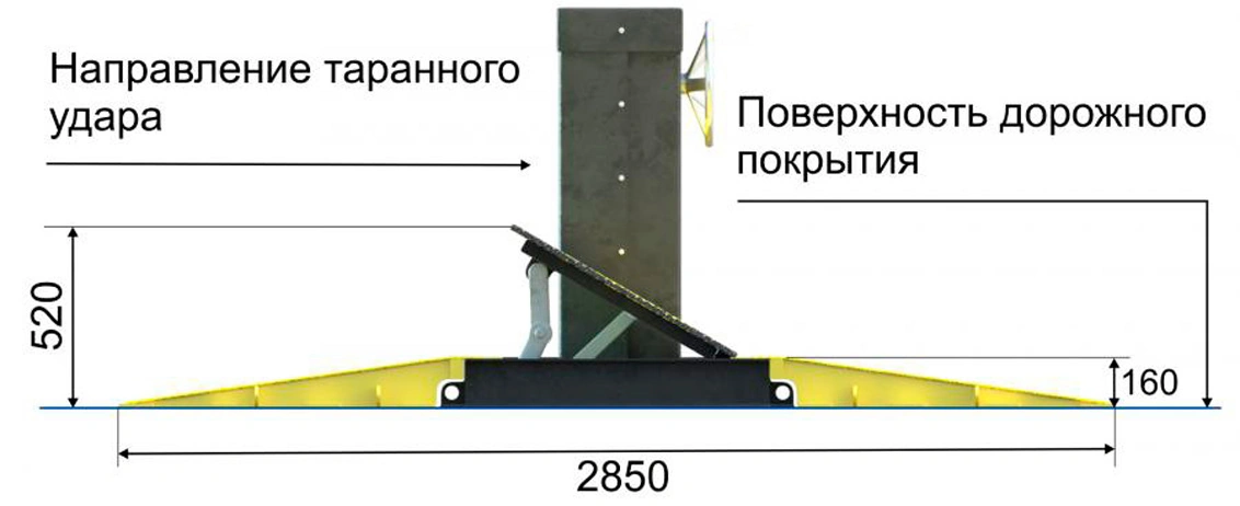 - Тип конструкции: Противотаранный дорожный блокиратор накладного типа