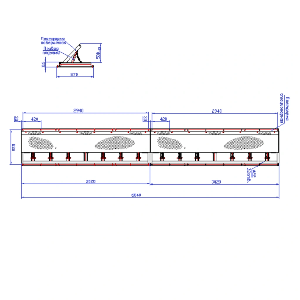 - ПЗП 6000Гз - Длина 6020 мм, Ширина 870 мм, Высота преграды 116 мм, Высота подъема 500 мм