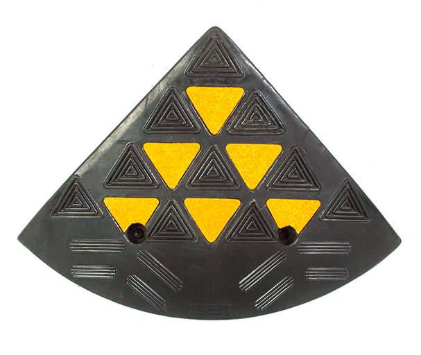 Бордюрный съезд, выполненный из черной резины, оснащен светоотражающими элементами из пленки высшего класса и имеет противоскользящую поверхность, что является его дополнительным преимуществом, учитывая климатические особенности, в которых он будет эксплуатироваться.