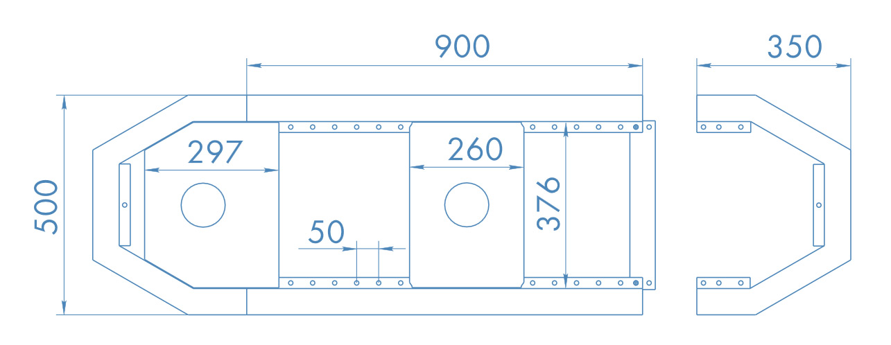 • Ширина между основными элементами: 0,5 м
