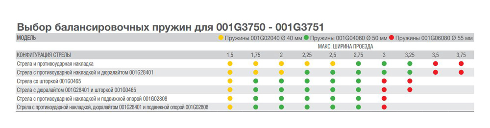 Для балансировки стрелы, подберите пружины в соответствии с длиной стрелы и установленными на ней аксессуарами: