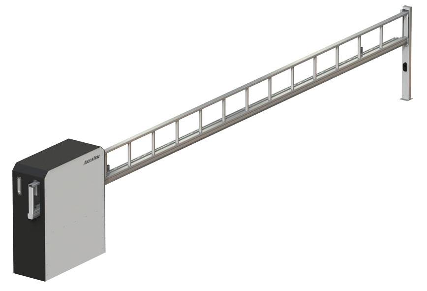 • Стойка шлагбаума, закрытая стальными панелями толщиной 2 мм. Цвета панелей RAL7004 (серый) и RAL9005 (черный)
