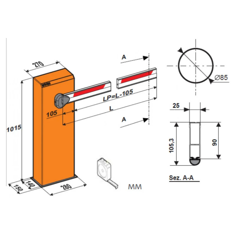 Серия оснащается однофазным двунаправленным электрогидравлическим двигателем, обеспечивающим быстрое время открытия шлагбаума. Данная модель устанавливается на проездах шириной до 5 метров.