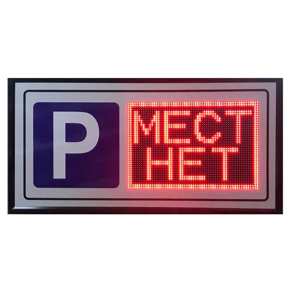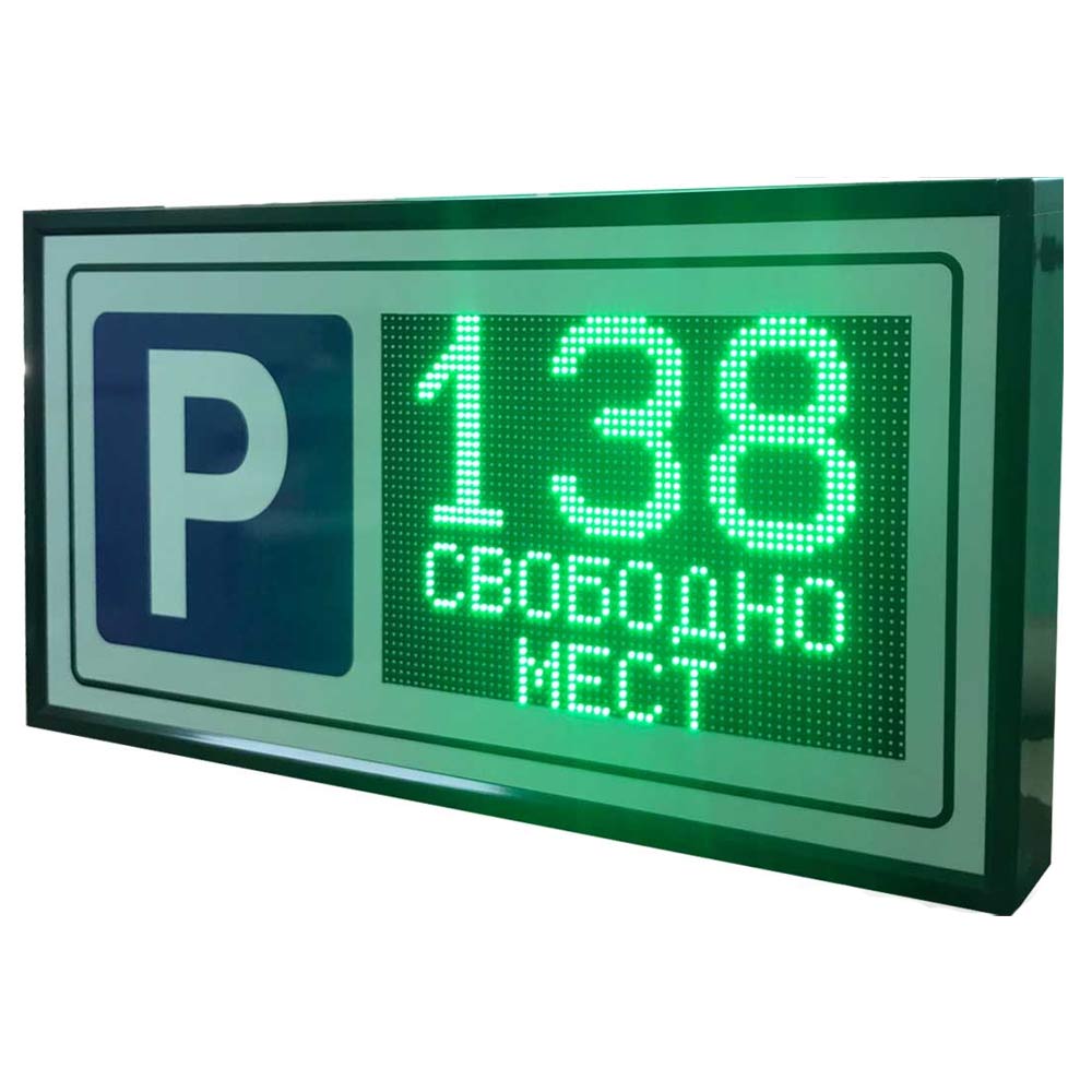 Табло на полноцветных светодиодных матрицах. Отображает количество свободных мест.