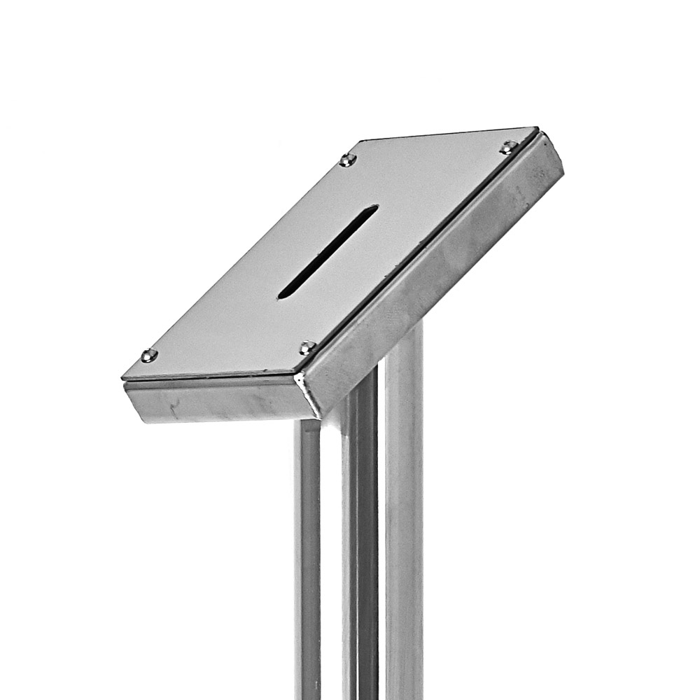 Стойка для считывателя, с площадкой для его крепления и 6-ю отверстиями для муфт. Материал: полированная нержавеющая сталь AISI 201.