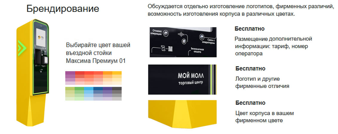 Благодаря возможности компании внешний вид въездной стойки Максима Премиум 01 возможно представить в дизайне, необходимом Вашему корпоративному стилю (возможно как полностью изменить форму оборудования, так и отдельные элементы парковочной системы Максима Премиум).