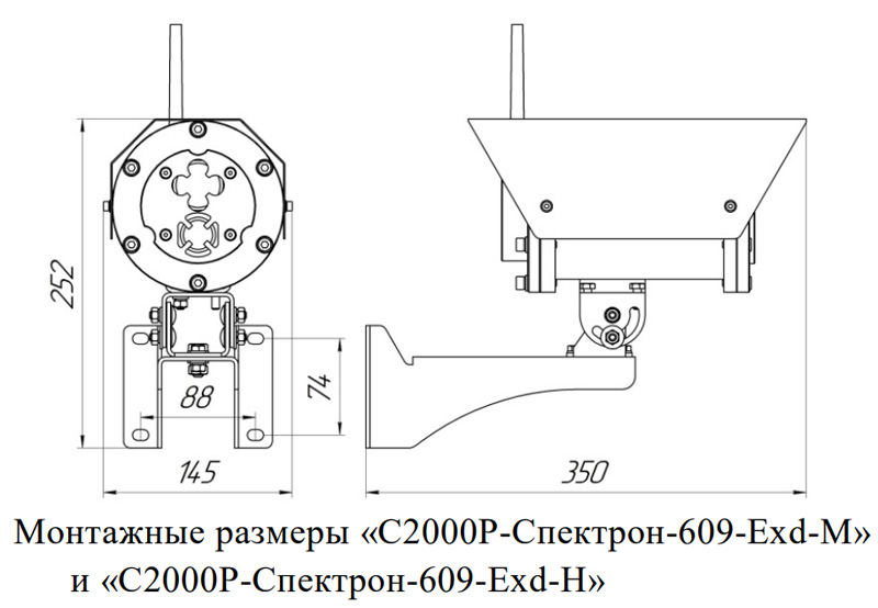 - «С2000Р-Спектрон-609-Exd-М» и «С2000Р-Спектрон-609-Exd-Н», мм: 145 × 252 × 350