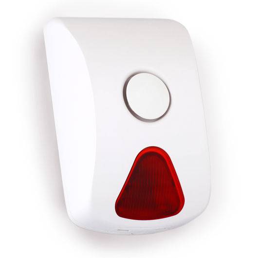 Оповещатель мигающим красным светом и звуком сирены информирует окружающих о произошедшем тревожном событии.