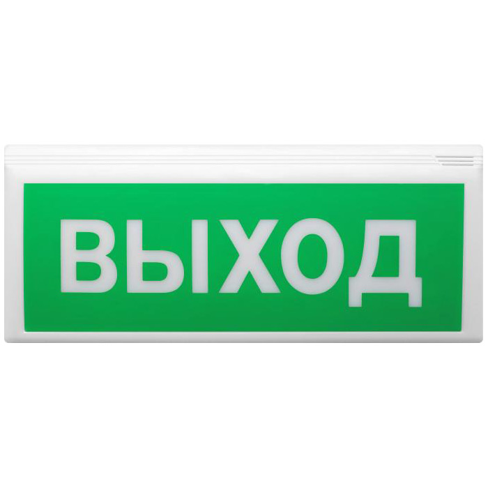 При пожаре оповещатель мигающим световым табло с надписью «ВЫХОД» информирует о произошедшем тревожном событии и указывает пути эвакуации.