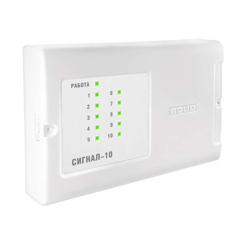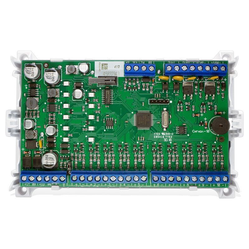 Блок приёмно-контрольный охранно-пожарный "Сигнал-10" предназначен для совместного использования с сетевым контроллером (пультом контроля и управления "С2000М" либо компьютером с установленным ПО АРМ "Орион") в качестве совмещённого приёмно-контрольного прибора и прибора управления в составе комплексов технических средств: