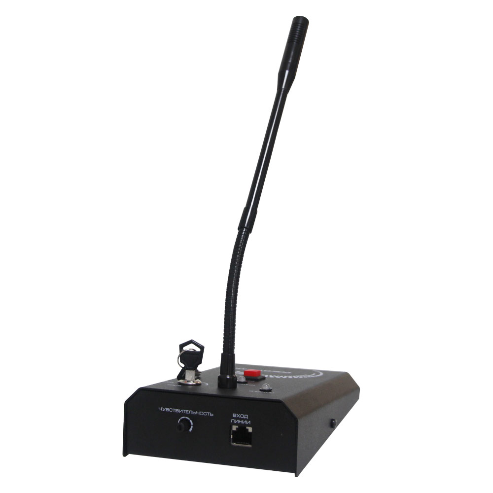 Специальное регулирование чувствительности микрофона на задней панели позволяет точно настроить уровень приёма звука для оптимальной работы в составе системы оповещения. Габариты устройства (до 110 × 165 × 45 (320) мм) и его масса (до 0,5 кг) способствуют удобной установке непосредственно в помещении оператора.