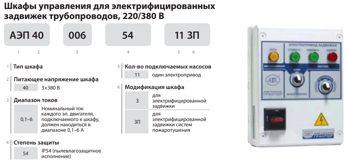 Модель АЭП40-016-54-11ЗП выполнена в металлическом корпусе IP54, обеспечивающем защиту оборудования от пыли и влаги, что позволяет использовать шкаф в технических и противопожарных помещениях. На лицевой панели размещена световая индикация состояний «Открыто», «Закрыто», «Авария» и «Сеть». Шкаф соответствует требованиям эксплуатации в составе систем пожарной автоматики и обеспечивает надежное управление электроприводами запорной арматуры на объектах любой категории.
