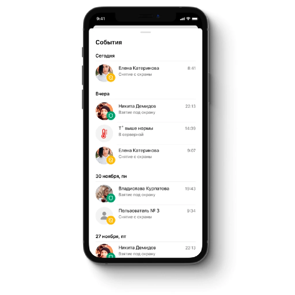 Оператор Центра Охраны настраивает для каждого объекта какие события должны попасть в ленту клиента.- Взятия и снятия с фотографией пользователей, именем и фамилией.