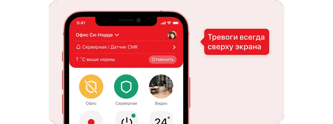 Тревогу можно отменить, нажав на кнопку «Отменить» на красной панели сверху.