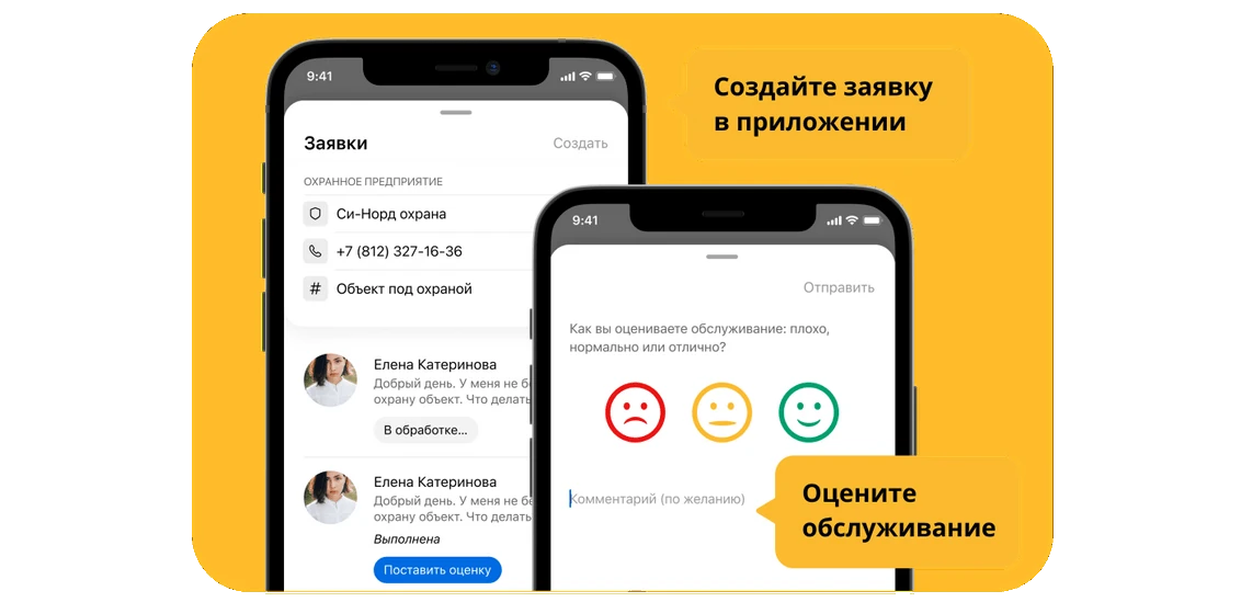 Клиент может отправить заявку на обслуживание прямо из MyAlarm. Он видит состояние заявки, не пропустит дату ремонта, а по окончании работы поставит оценку инженеру.