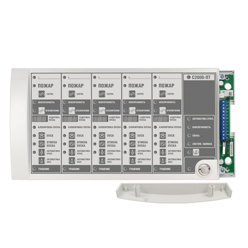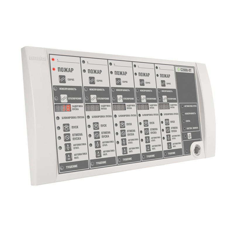 Блоки индикации системы пожаротушения «С2000-ПТ» и «С2000-ПТ 2RS485» предназначены для индикации состояния и дистанционного управления направлениями пожаротушения в составе автоматической установки газового, порошкового, аэрозольного пожаротушения или тушения тонкораспыленной водой. Блок предназначен для работы в составе ИСО «Орион», Блок «С2000-ПТ» отличается от блока «С2000-ПТ 2RS485» наличием второго резервного интерфейса RS-485 и возможностью управления 5 направлениями пожаротушения. «С2000-ПТ» обеспечивает работу 4 направлений пожаротушения.