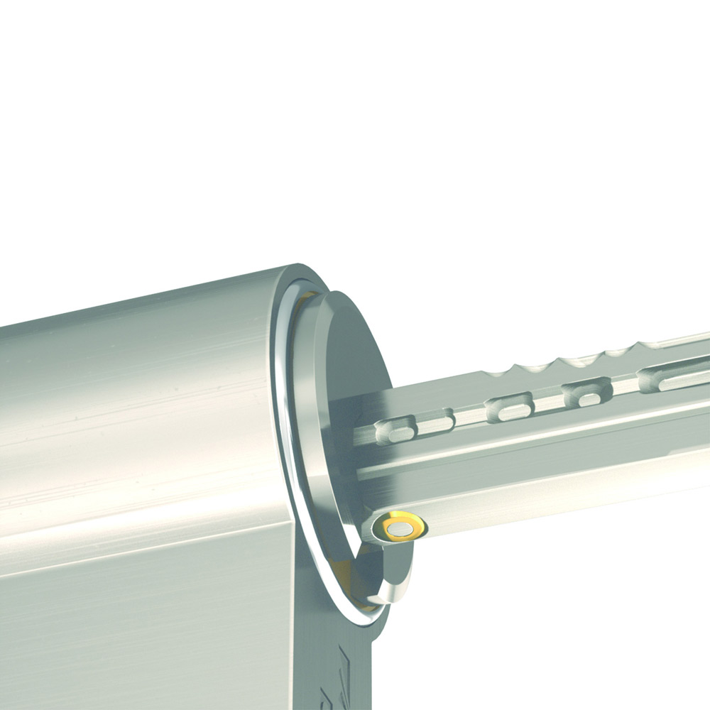 С помощью специальной функции перекодировки или "строительного ключа" (BUZ) можно изменять секрет цилиндрового механизма без его замены до 2 раз. Это экономит много времени и денег в случае потери ключа. Если ключ потерян или арендаторы съезжают с первым ключом, один поворот специальным перекодироввочным ключом делает недействительным ранее использованный ключ.
