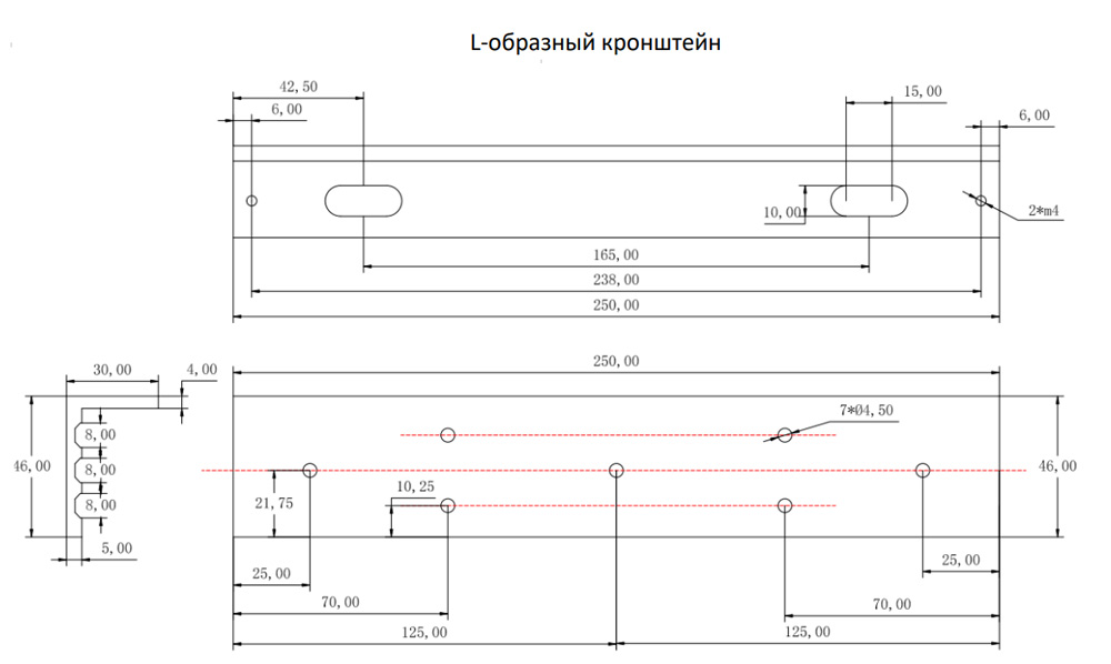 - L-образного кронштейна: 250 × 46 × 30 мм