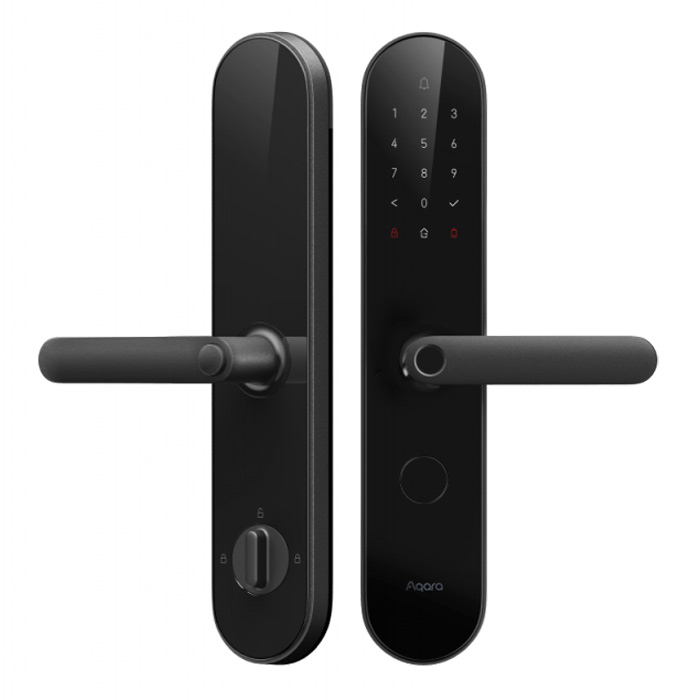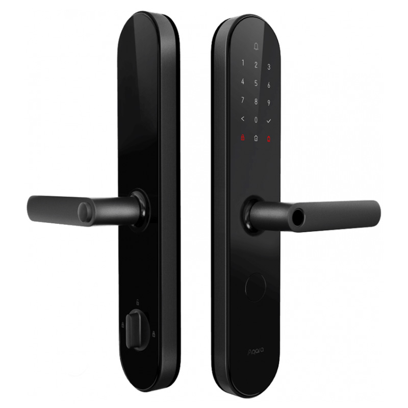 Aqara N100 (Zigbee) — умный замок, поддерживающий отпирание двери при помощи отпечатка пальца, пароля, NFC, аварийного ключа и HomeKit. Считыватель отпечатков пальцев встроен в ручку и реагирует мгновенно.