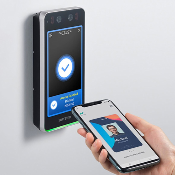 Эксклюзивный метод аутентификации Suprema «Шаблон лица на мобильном устройстве» позволяет пользователям регистрироваться в системе контроля доступа и сохранять биометрический шаблон собственного лица непосредственно на своих мобильных устройствах. Это дает пользователям полный контроль над личными данными и идентификаторами. Биометрические данные пользователей не хранятся в базах данных компаний.