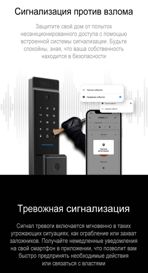 • Способы открытия: Отпечаток пальца, 3D распознавание лица, пароль, IC-карта, NFC, приложение, ключ