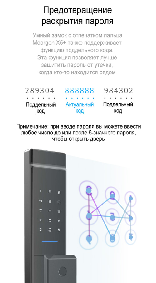 • Способы открытия: Отпечаток пальца, 3D распознавание лица, пароль, IC-карта, NFC, приложение, ключ