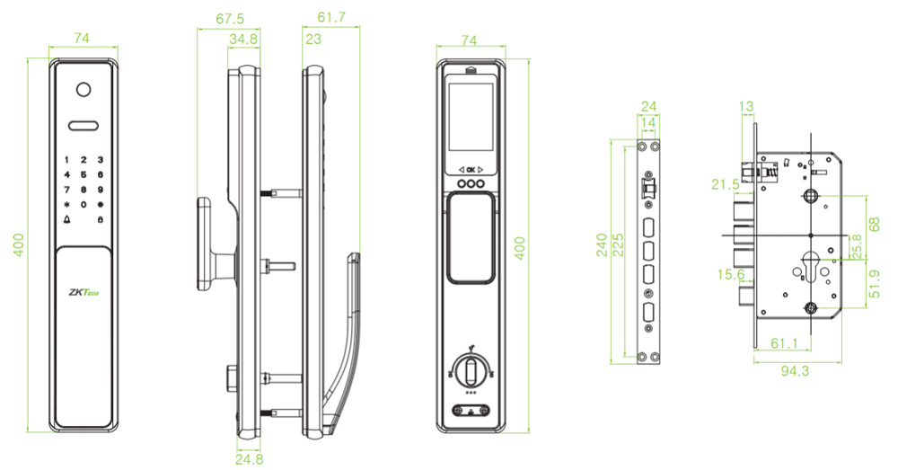 • Скрытый сенсор отпечатка пальца, установленный за наружным блоком ручки