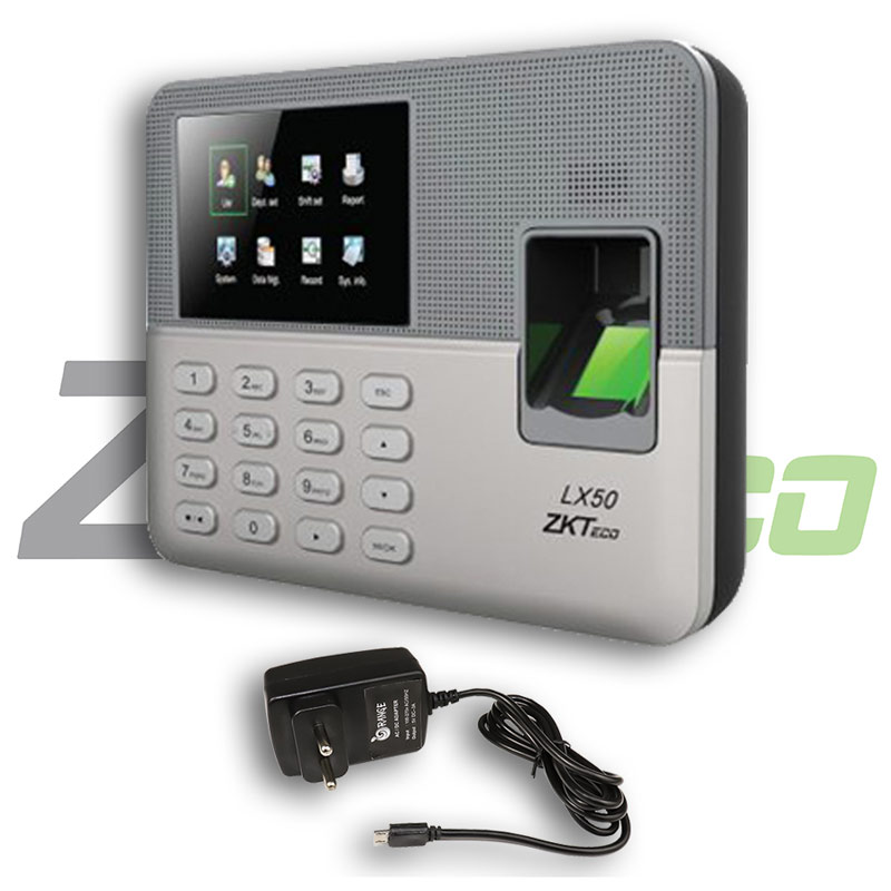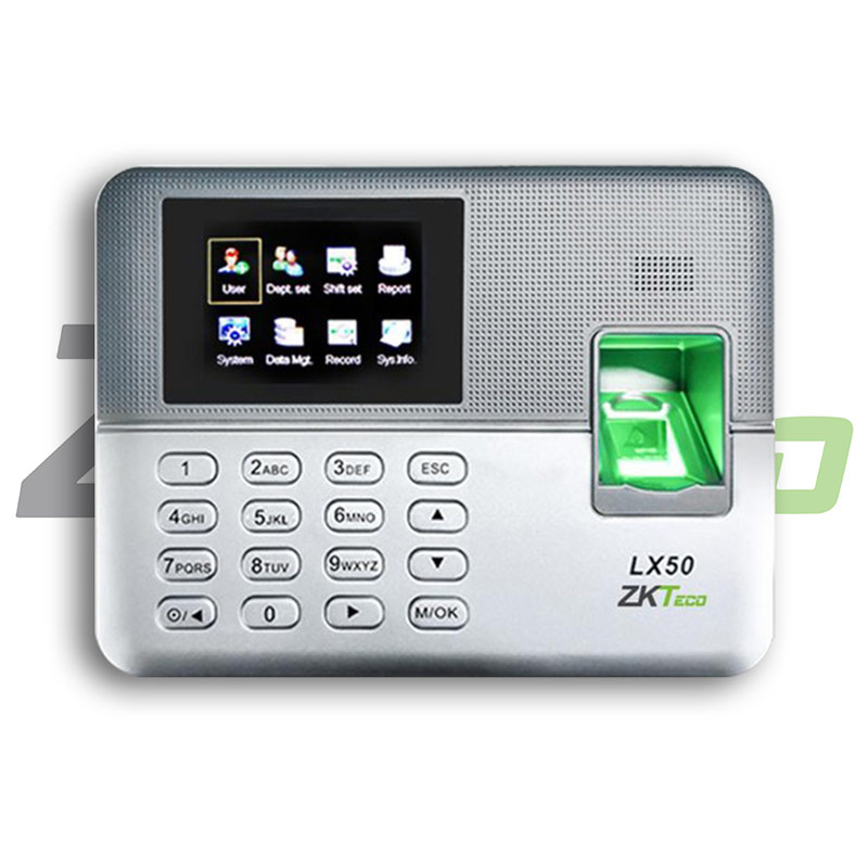 Терминал учета рабочего времени по отпечаткам пальцев ZKTeco LX50; 2.8 цветной экран; емкость отпечатков пальцев: 500; емкость пользователя: 500; емкость событий: 50 000; связь: USB-хост и клиент; стандартные функции: DST, запрос самообслуживания, 9-значный идентификатор пользователя, автоматическое переключение состояния, звонок по расписанию, ввод T9, отчет SSR