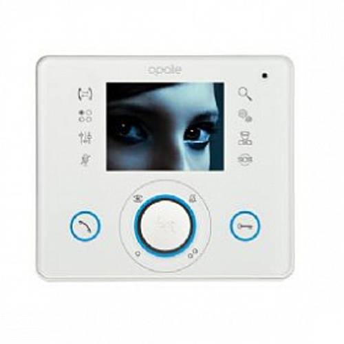 Настенный монитор с сенсорным ЖК-дисплеем 3,5 дюйма, оснащенный графическим интерфейсом. На левой стороне находятся кнопки доступа к функциям связи, дополнительных команд, регулировки видео и отключения звука при приеме вызова, а на правой – кнопки увеличения изображения, настройки устройства, отображение сообщений консьержа и кнопка «Паника» для экстренной связи с ним.