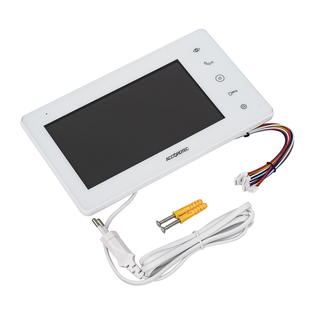 Видеодомофон AccordTec AT-VD A752C/SD WH — это современное устройство, обеспечивающее удобный и безопасный контроль доступа в квартиру или частный дом. Модель оснащена 7-дюймовым дисплеем с разрешением 1024×600 пикселей, который обеспечивает четкое изображение и комфортное наблюдение. Управление осуществляется при помощи сенсорных кнопок, а встроенные функции делают использование максимально простым и функциональным. Поддержка форматов AHD, 720P/1080P и CVBS позволяет подключать различные панели и камеры, обеспечивая высокую совместимость.