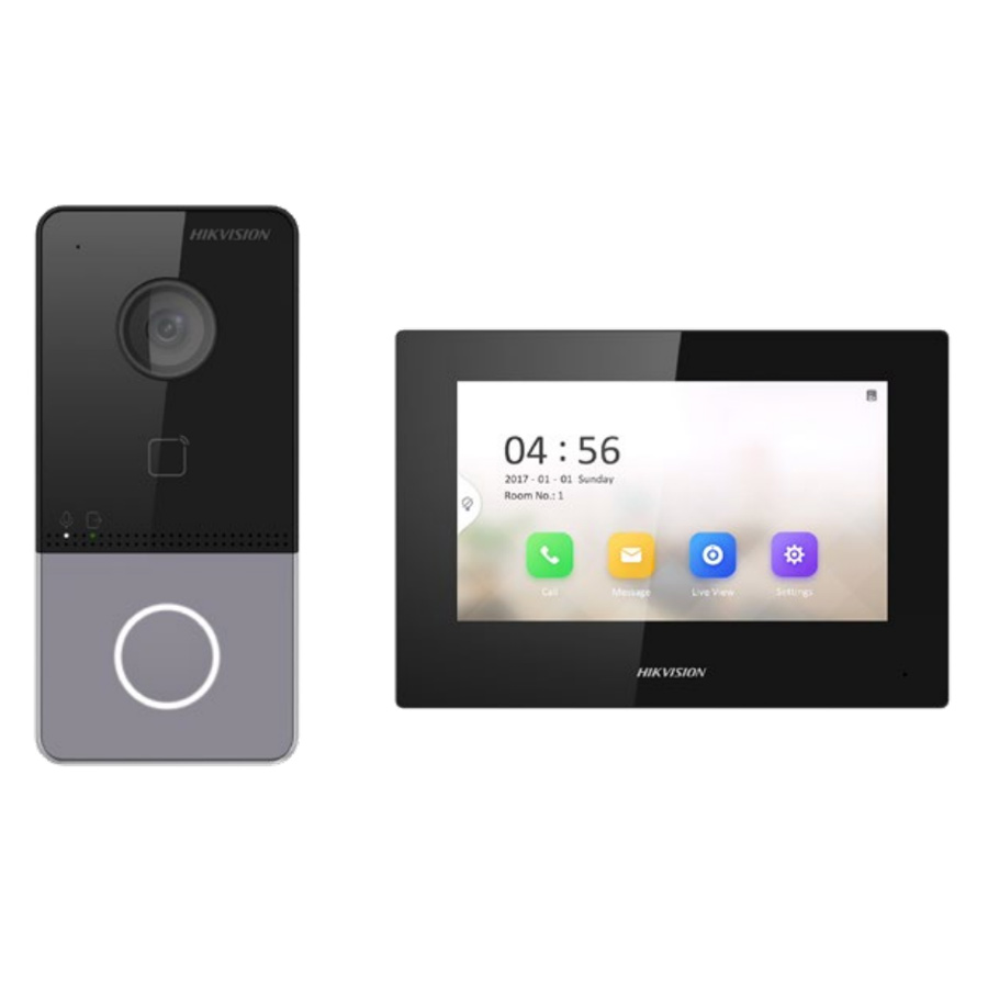 Комплект видеодомофона Hikvision DS-KIS605-P состоит из небольшого экрана с диагональю 7 дюймов и вызывной панели. Установив видеодомофон, вы всегда будете знать, кто звонит в ваш дом или офис. Подобное устройство сделает ваше жилище более безопасным. Составляющие комплекта легко монтируются, просты в эксплуатации и не требуют технического облуживания.