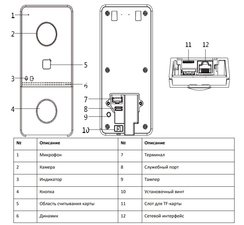 Характеристики вызывной панели:
