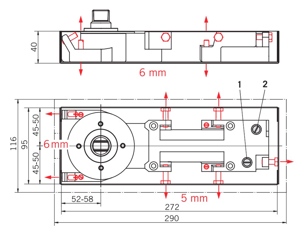 Для маятниковых дверей с малой и средней интенсивностью использования и стандартных габаритов – массой до 80 кг и шириной полотна до 1.000 мм..