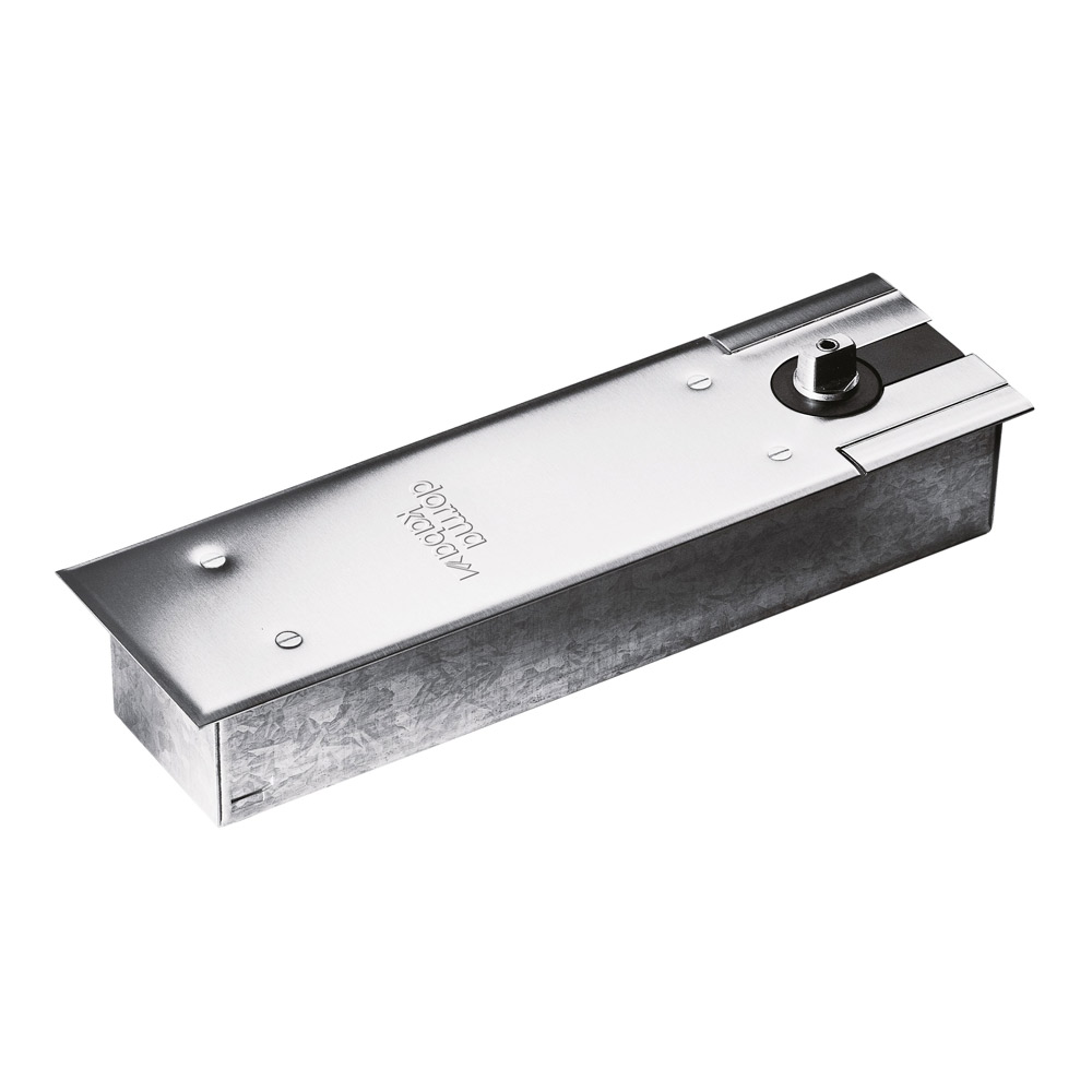 Универсальный напольный доводчик, удовлетворяющий стандарту DIN EN 1154 и ГОСТ Р 56177-2014 для левых, правых и маятниковых дверей весом до 120 кг. С независимо регулируемыми начальной скоростью закрывания, дохлопом и усилием закрывания (EN 1-4).
