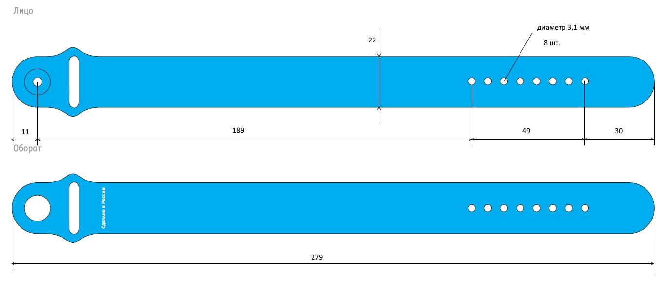 - 280x22 мм, толщина ремешка 2,5 мм (мужской)