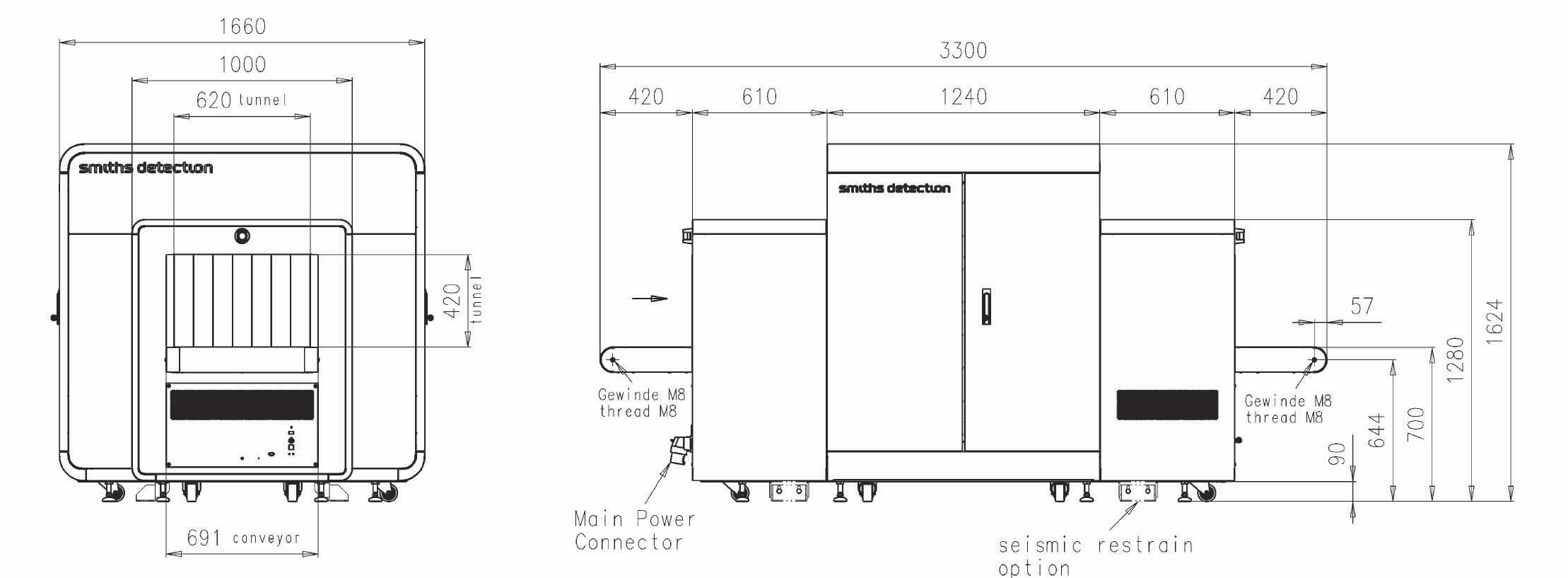 • Макс. габариты досматриваемого предмета: 750 мм × 550 мм (Ш × В)