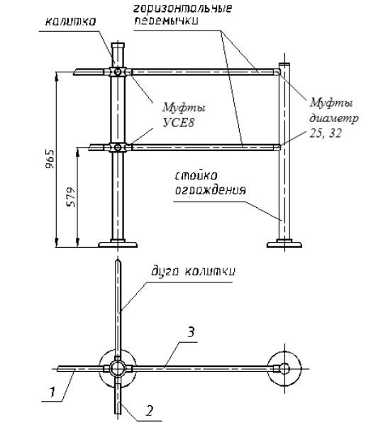 М8х20. Внимание: запрещается использовать для стыковки с ограждениями отверстия поз. 9, винты которых крепят кольца 3.