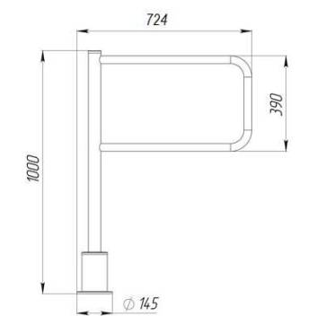 В калитке предусмотрена возможность установки створок различной длины для формирования прохода шириной 600, 800 и 1000 мм. На рисунке показан габаритный размеры калитки для ширины прохода 600 мм.