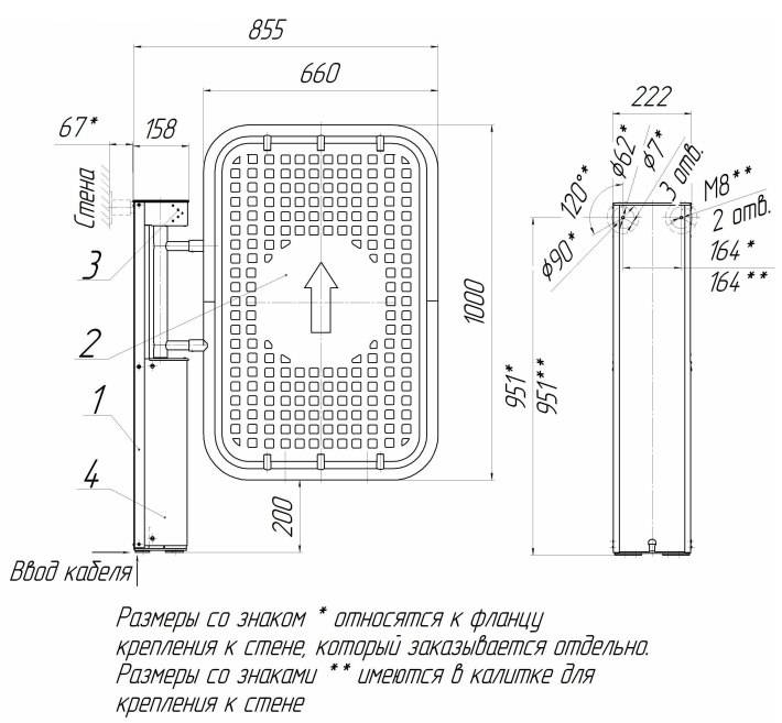 Корпус калиток необходимо заземлять. Клемма заземления находится под кожухом 4 в нижней части стойки.
