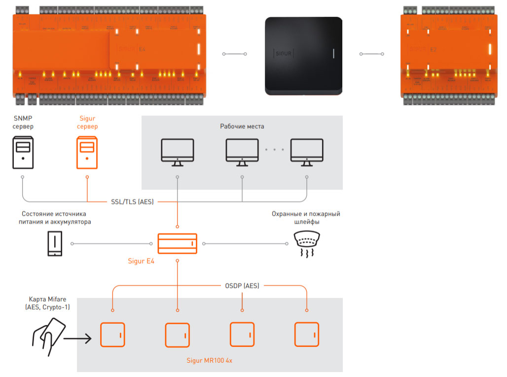 Контроллеры Sigur, как часть общей системы, имеют все необходимое для того, чтобы органично вписаться в инфраструктуру предприятия.